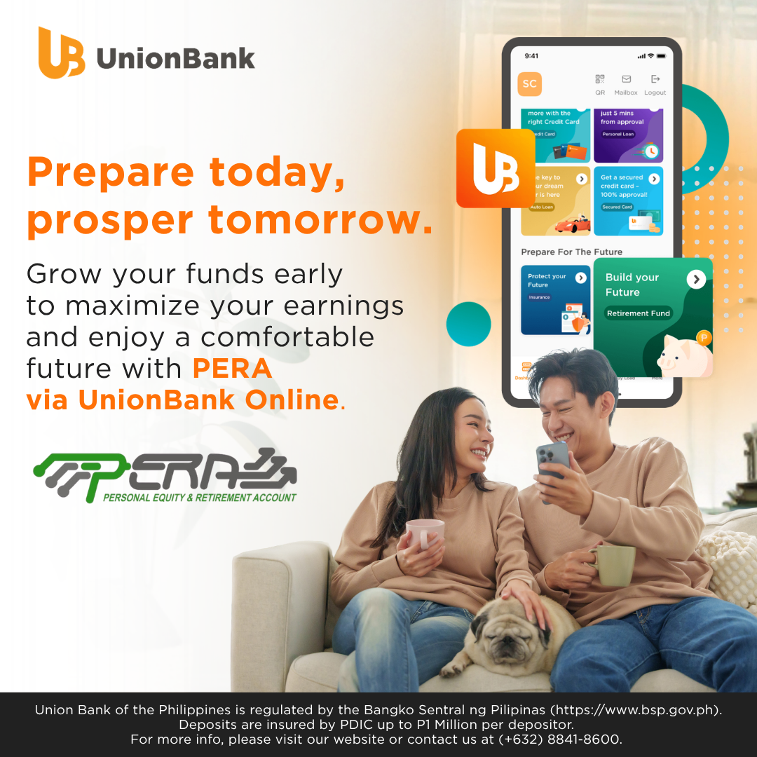 To know more about PERA via UnionBank Online, please visit https://www.unionbankph.com/unionbankonline/pera. Union Bank of the Philippines is regulated by the Bangko Sentral ng Pilipinas https://www.bsp.gov.ph. Deposits are insured by PDIC up to 1 Million pesos.