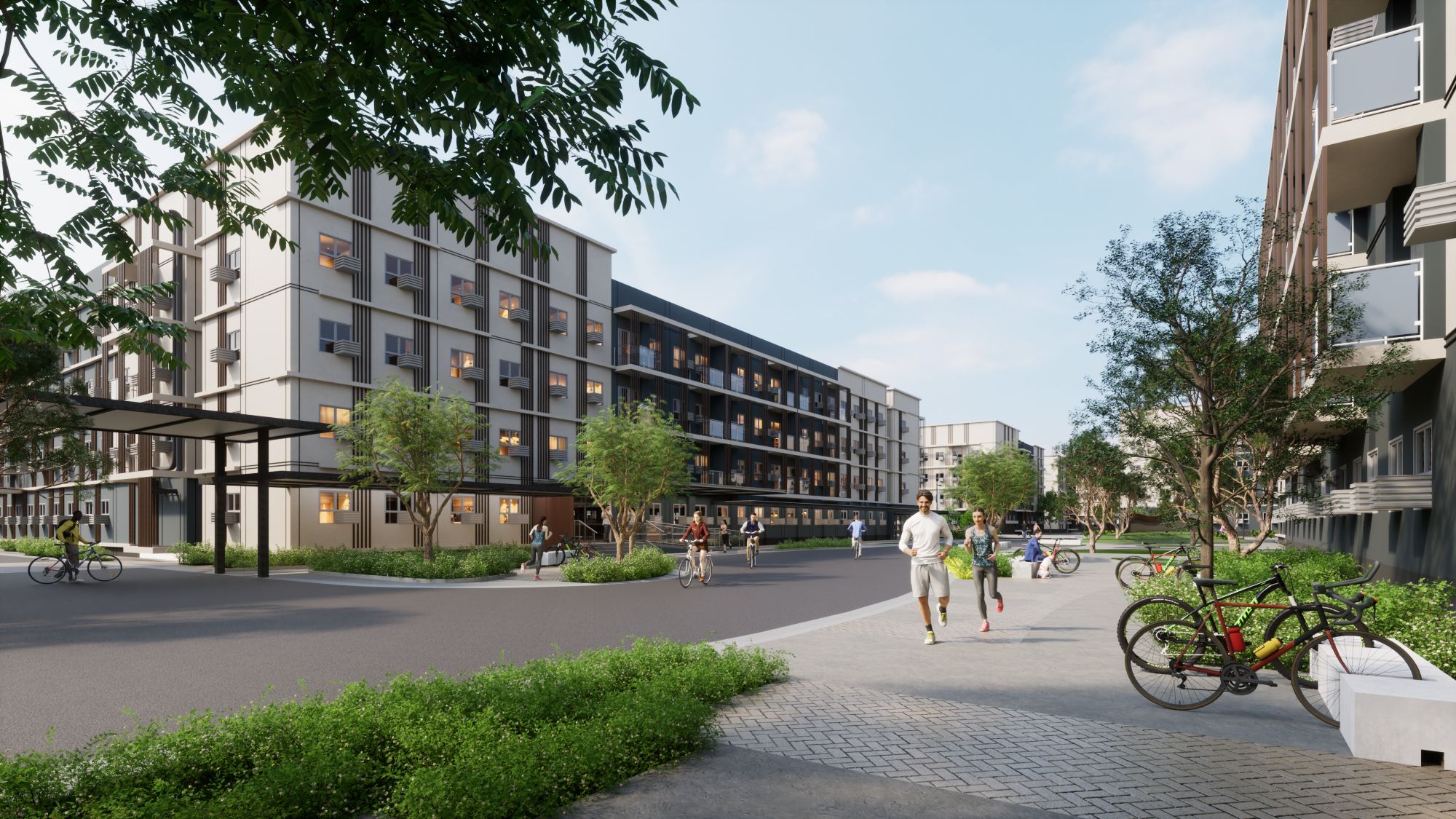 Westwind complements this environment with amenities such as jogging paths, bicycle lanes, outdoor workspaces, and landscaped open areas. These spaces help create opportunities for both relaxation and connection within the community.