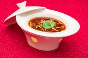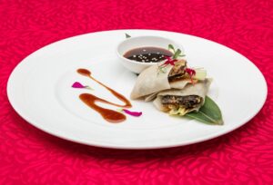 At Red Jade, the Vegetarian Set Menu brings the classic Chinese flavors to the forefront. The set includes Vegetarian Peking Duck, Hot and Sour Soup with Vegetable Dumpling, Gong Bao Tofu, Vegetarian Fortune Bao, to name a few. A la carte dishes like Vegetable with Bean Curd Soup and Stir-Fried Vegetables and Mushroom in Crispy Taro Ring further expand the meat-free repertoire.