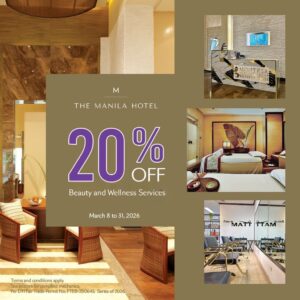 “This Women’s Month, we invite women to take a moment for themselves,” says Marvin Kim Tan, vice president for sales and marketing of The Manila Hotel. “Women play so many important roles in our lives and communities, often balancing responsibilities while continuing to inspire those around them. At The Manila Hotel, we believe they deserve spaces where they can relax, feel cared for, and celebrate their own well-being. Through these offerings, we hope to create moments of rest and renewal in a setting known for its timeless hospitality.”