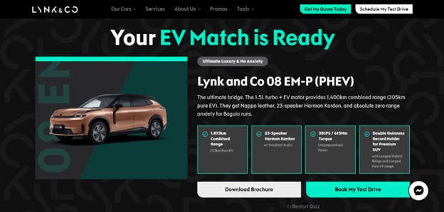 Lynk & Co Philippines encourages users to take a few minutes to try the tool and see how their everyday driving habits translate into a personalized EV recommendation.